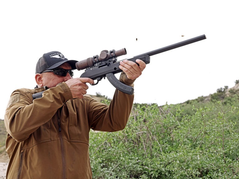 Not surprisingly, match ammo did the best, with Norma Match-22 40-grain holding the golden ticket of smallest groups and perfect reliability — 0.5 MOA and no malfunctions. Federal Gold Medal 40-grain’s best group was 1.5 MOA, but we experienced a few stovepipes. CCI Clean-22 subsonic 40-grain and Federal Champion 36-grain value pack both grouped around 2 MOA. While the Federal ran perfectly, the CCI subs had a number of stovepipes. Norma Subsonic-22 40-grain as well as CCI Clean-22 High Velocity 40-grain and Hyper Velocity 31-grain all grouped around 2.5 MOA and functioned reliably.