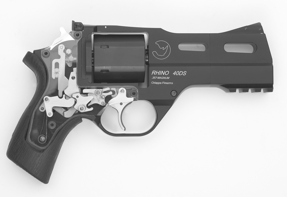 The Chiappa Rhino is the most innovative revolver to be marketed to the American shooter in more than a hundred years. It fires from the bottom chamber of the cylinder instead of the top for a more straight-line recoil that reduces muzzle jump and perceived recoil. Its innovative lockwork gives a 50 percent shorter trigger pull and a faster reset.